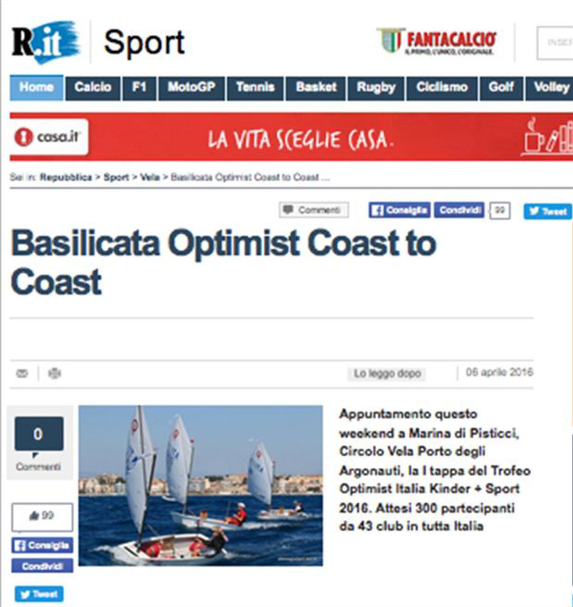 LaRepubblica.it - Basilicata Optimist Coast to Coast